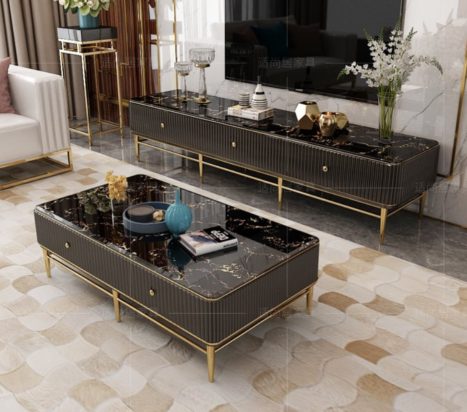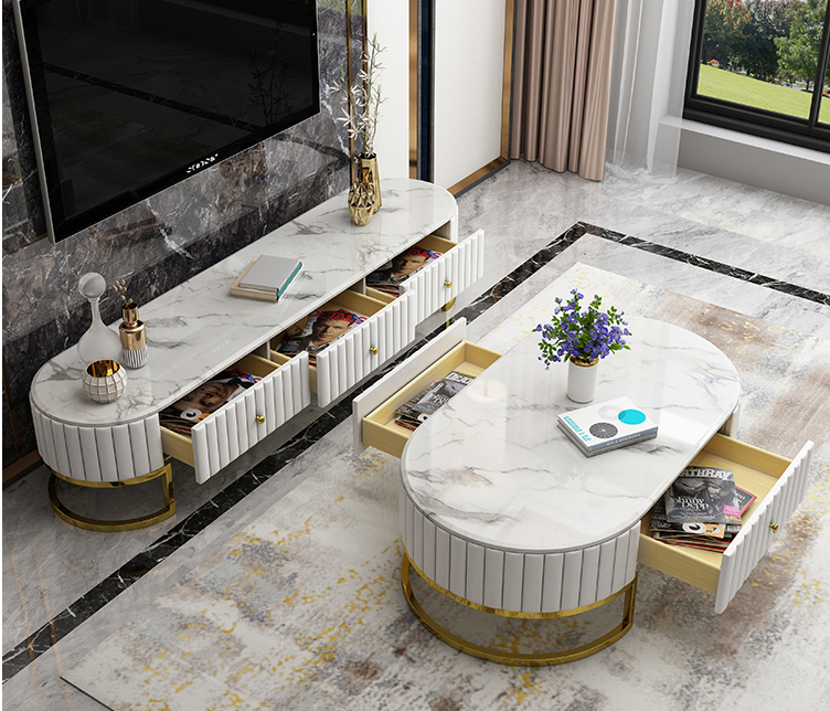 Stainless steel leg marble top coffee table wooden set modern design living room furniture