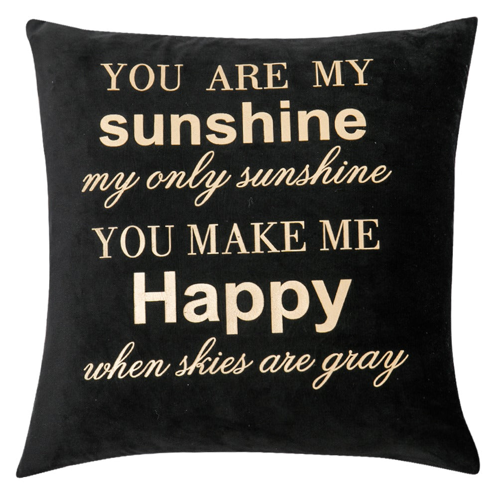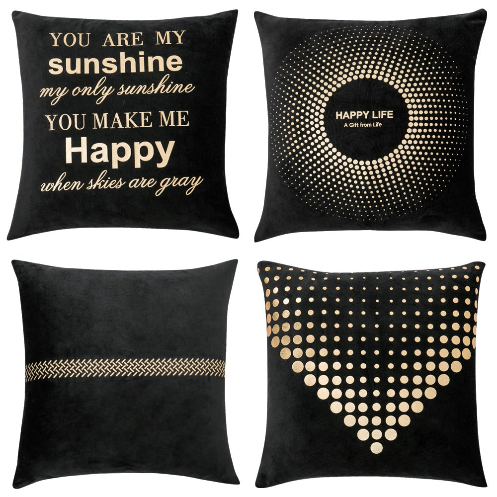 Supplier Home Decor Sofa Black Pillow Case Velvet Gold Stamping Throw Pillow Cover Leaves Letters Foil Cushion Covers