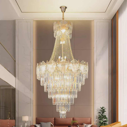 Luxury Modern Style Gold Real K9 Crystal Chandelier Living Room High Ceiling Light- CUSTOMIZE FOR OTHER SIZES