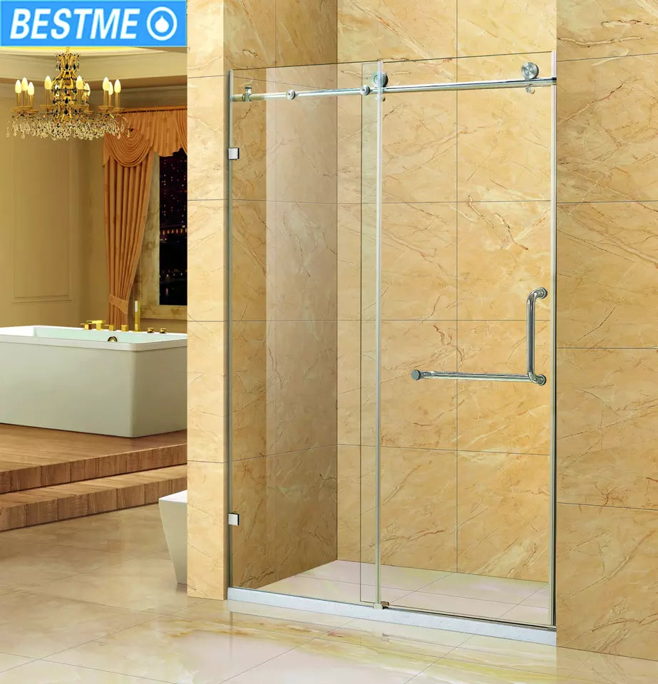 Bathroom Custom Frameless Chrome color Hotel Tempered Glass Single Sliding Shower Doors