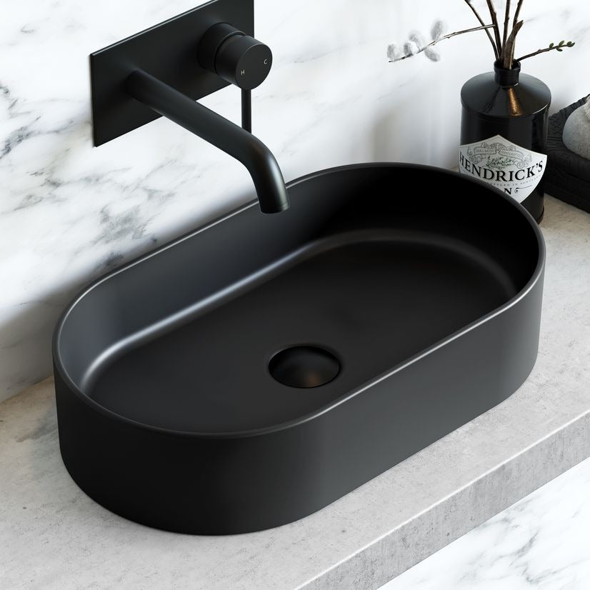 Black Edition Matte Sink Oval Basin Porcelain Tabletop Countertop