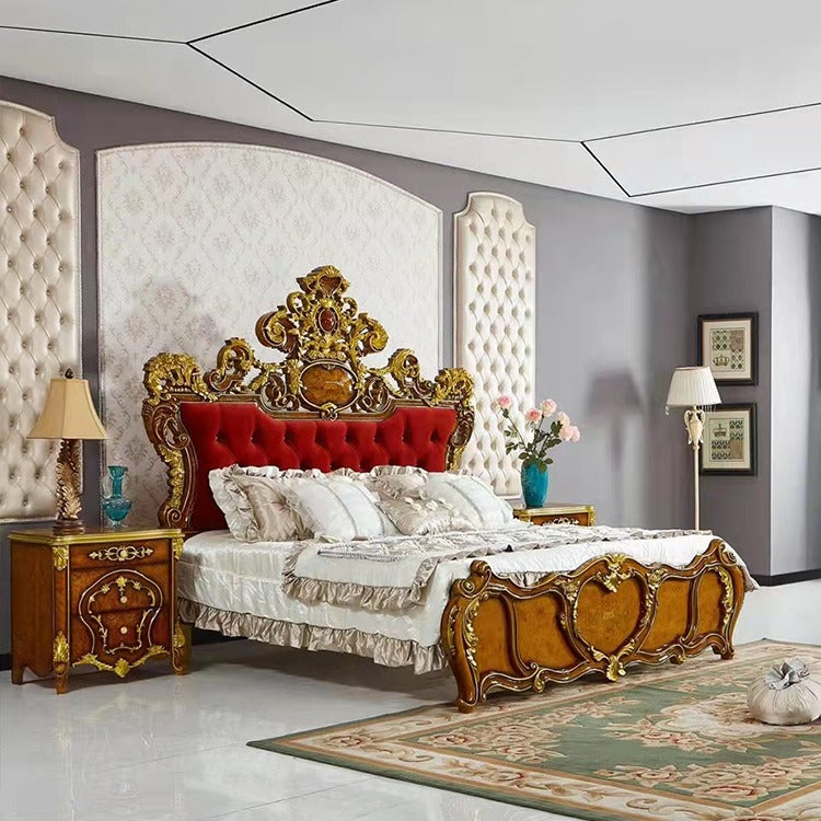 Luxury bedroom set king size solid wood bed frames gold European luxury wooden bed