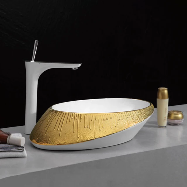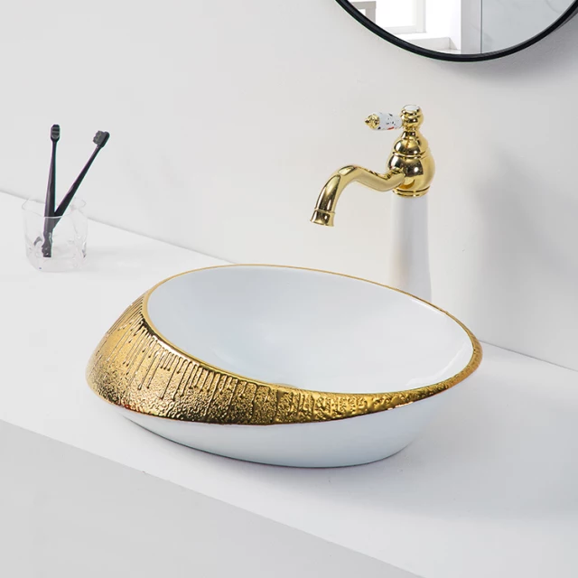 Golden luxury decor ceramic handwash basin countertop rich gold basin bathroom vessel sink