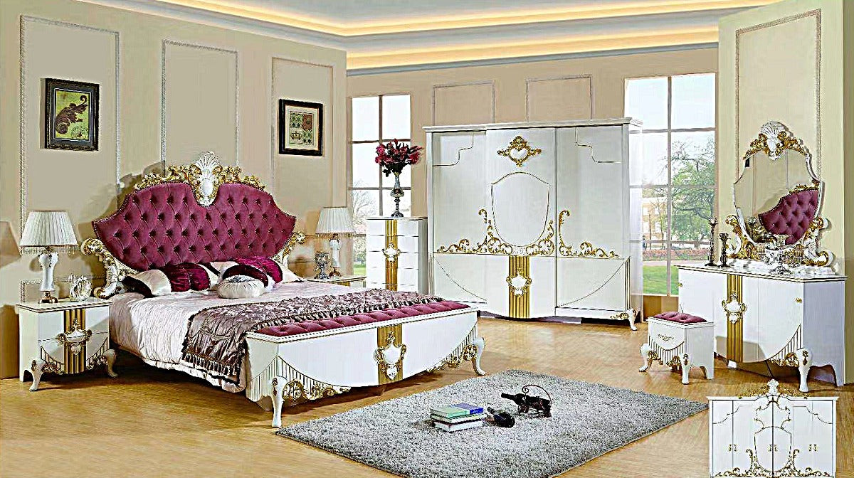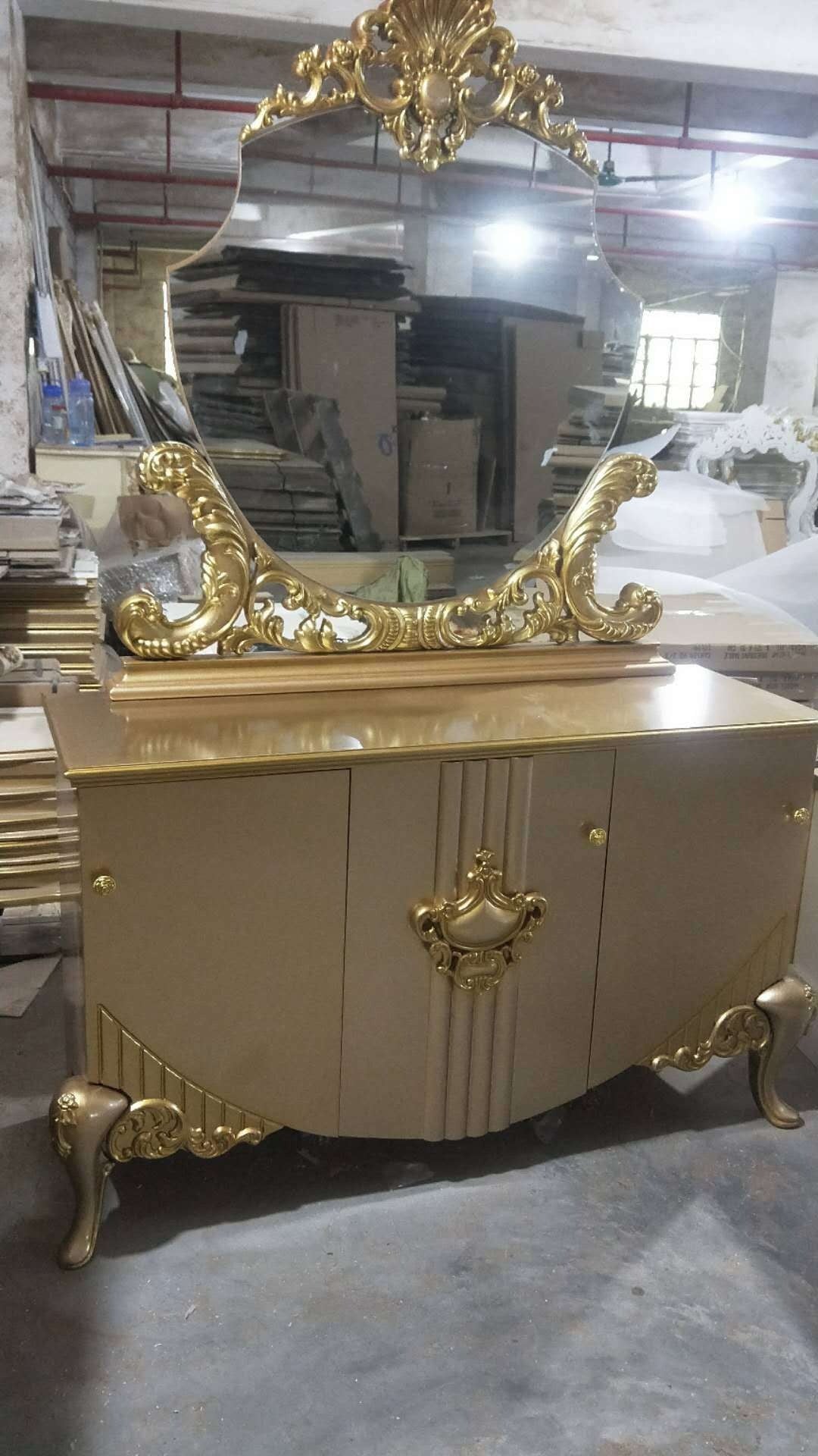 Luxury king size solid wood bed frames gold European luxury wooden bed with wardrobe