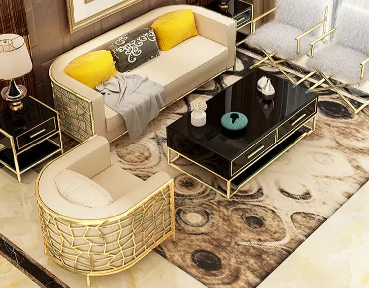 leather or fabric moder office sofa set with golden stainless steel legs gold modern stainless steel frame luxury single sofa