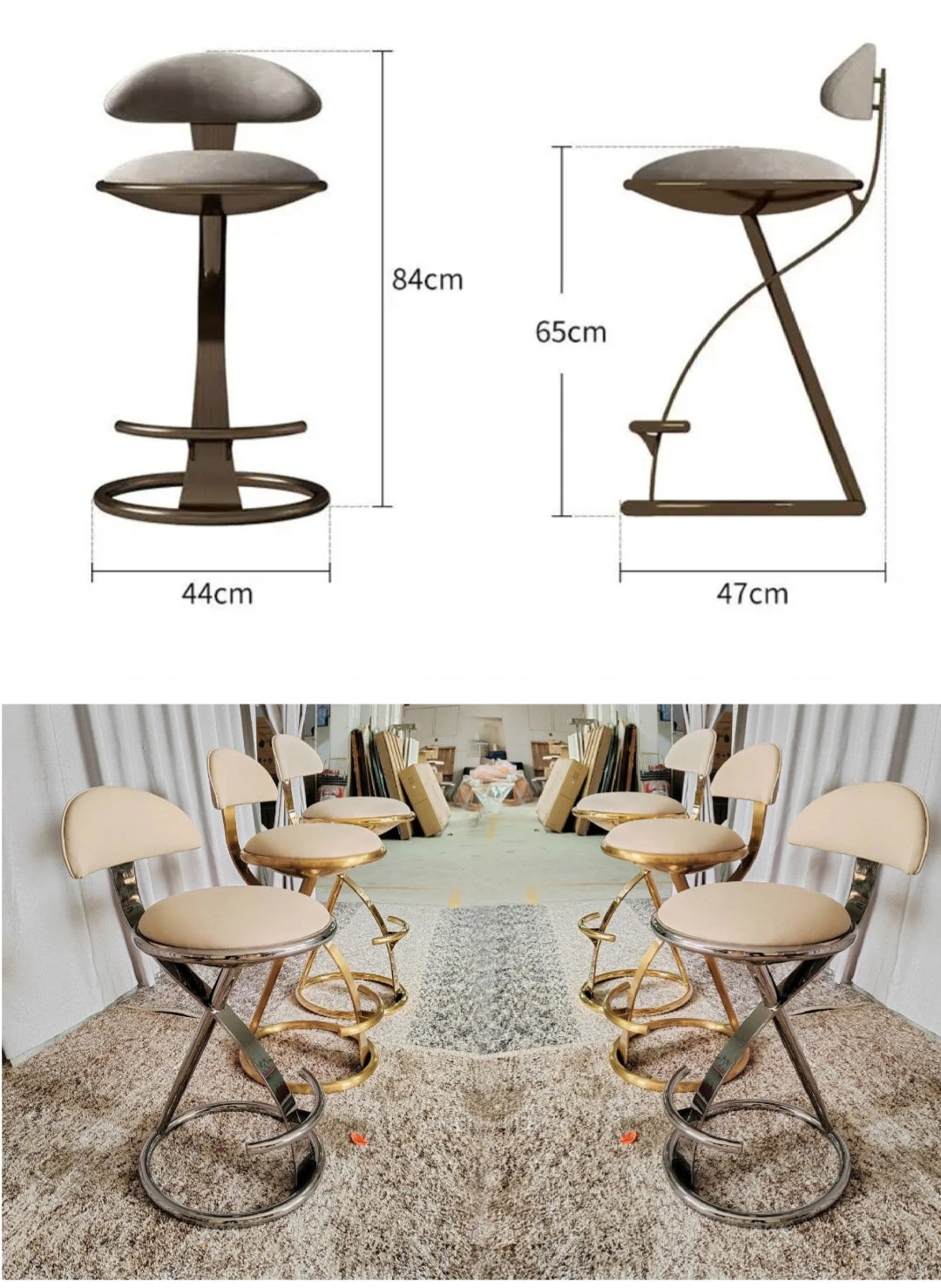 Luxury Italian Art Stool Bar Chair Stainless steel Brass color