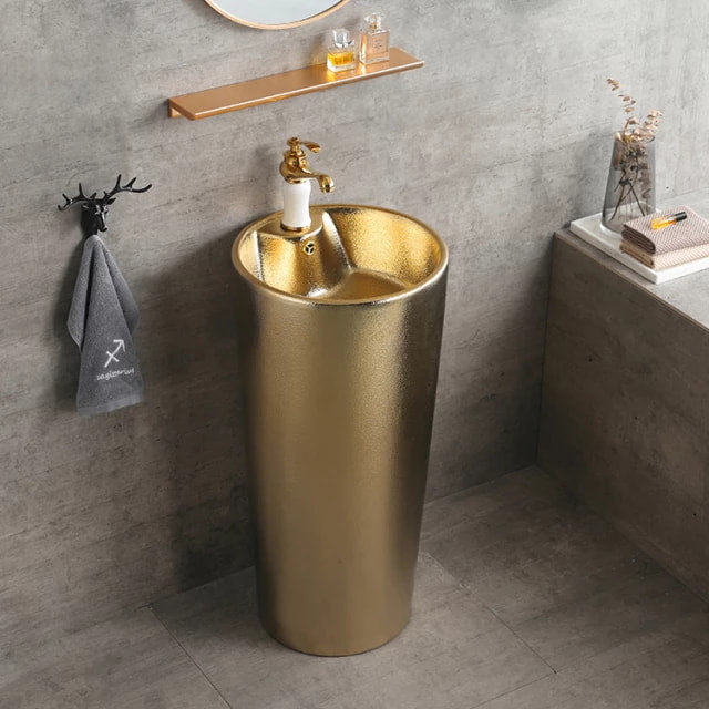 Radiant Gold Finish a Statement Sink with Sculptural Elegance Pedestal Wash Basin