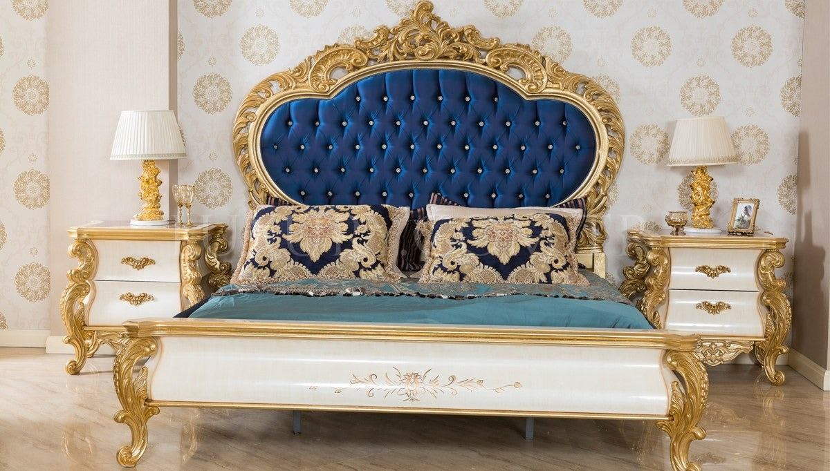 Luxury Style Royal Imperial Hand Made European Rococo Gold Leafing Antique Bed for Master Bedroom unique