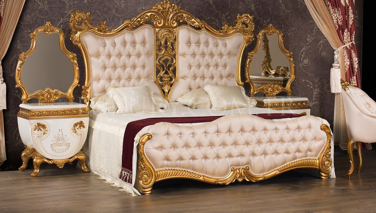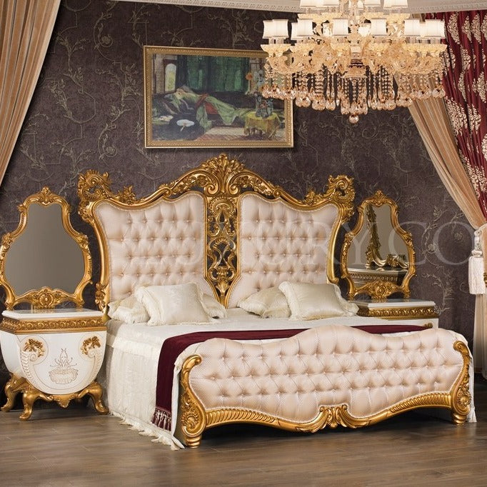 Luxury unique Made European Rococo Gold Leafing Style bed Royal Imperial Hand Antique Bed for Master Bedroom