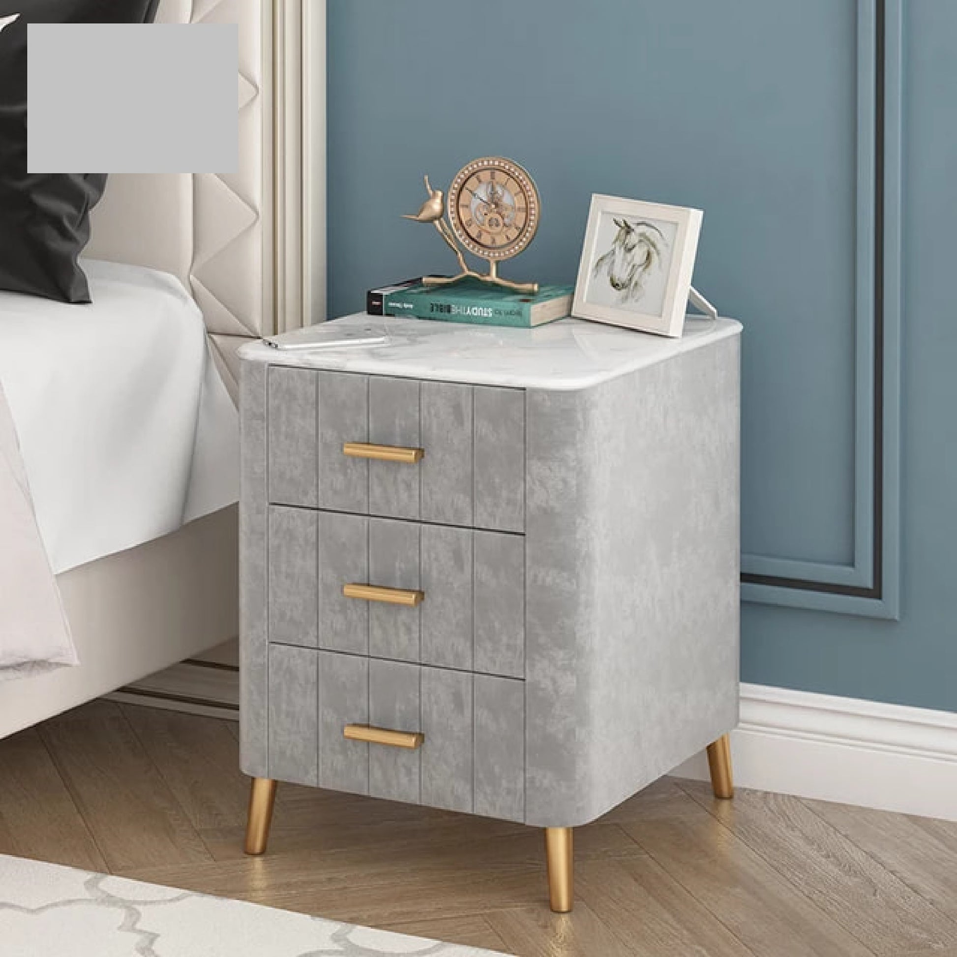 Nordic Side Table Bedside Table Slate Marble Top With Drawer