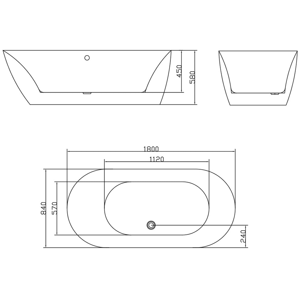 ncluding manually rotating drainer overflow Colour White/Black Material Pure Acrylic Size 1800*850*580mm (about 71 inch) Read more