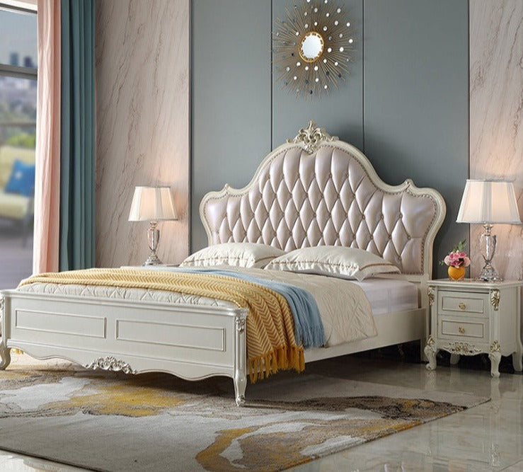white wooden american luxury bedroom furniture set for girl , wholesale king size bed frame