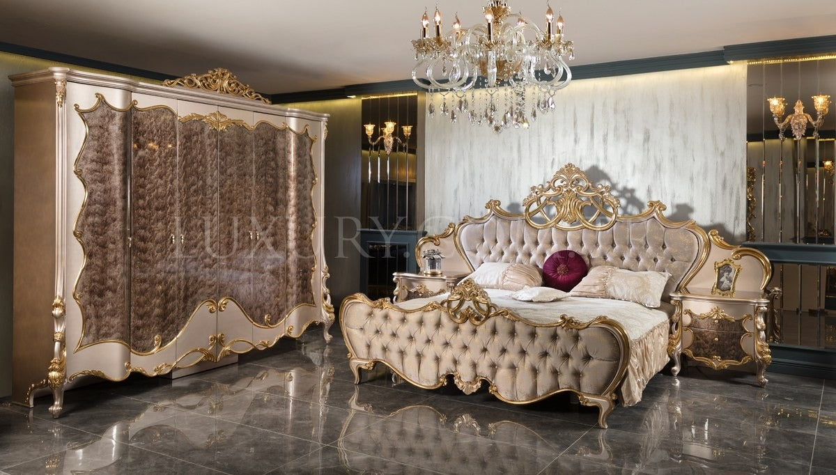 Wooden Craving Villa bed set furniture noble Bedroom Sets Classic Italy Home Furniture Antique Wood King Size Bed European